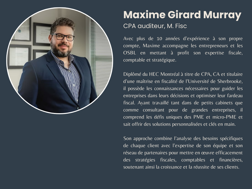 Impôts non inclus – ce forfait ne comprend pas les déclarations d’impôts, réservées à nos forfaits réguliers. Vous pouvez consulter nos autres options si vous souhaitez inclure ce service.